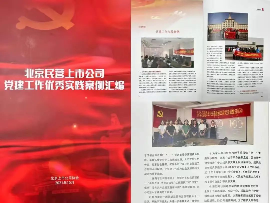 近期,北京上市公司协会授予北京保利国际 保利信息技术股份公司荣誉证书,保利国际 保利党建工作实践入选北京民营上市公司党建工作优秀实践案例,相关党建活动已收录在《北京民营上市公司党建工作优秀实践案例汇编》。